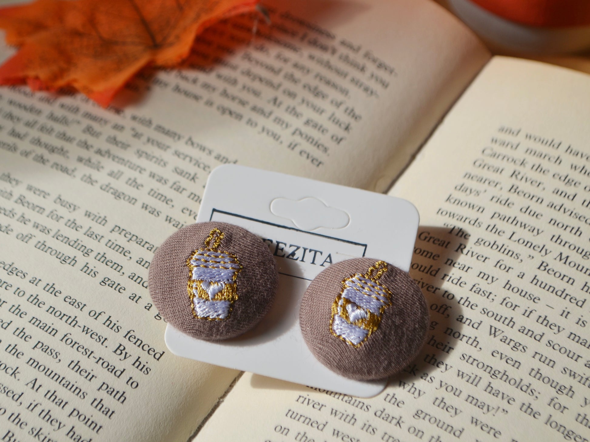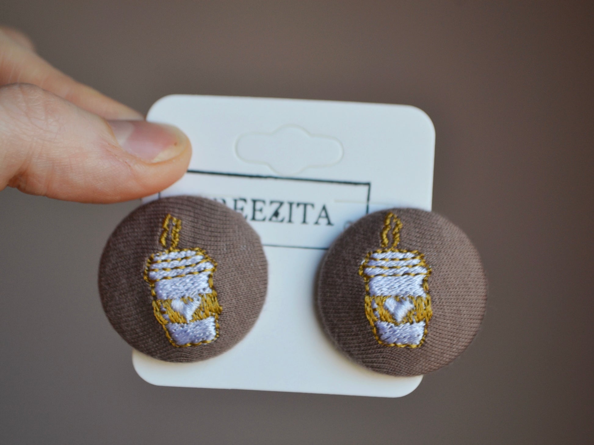 Cosy, but make it earrings. These brown Coffee Cup Button Earrings are a subtle nod to our “I Mo Ré Compordach” (“in my cosy era”) sweatshirt—think a warm cup, turning pages, and cold Donegal morning vibes in earring form. Each pair is carefully embroidered on fabric buttons and handmade in Ireland to match our Irish In My Cosy Era sweatshirts.