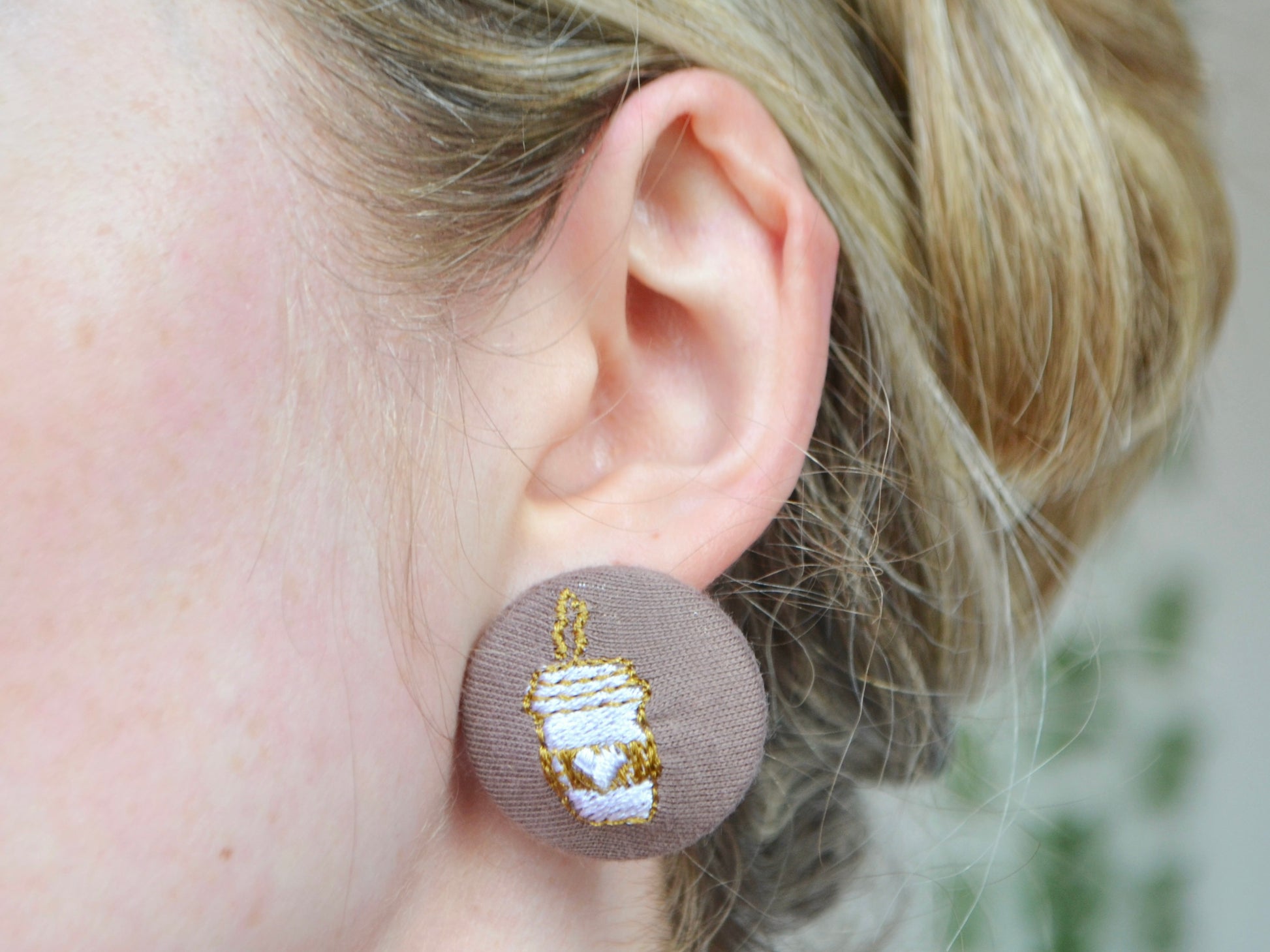 - Materials: Fabric (cotton blend, made from offcuts), embroidery thread, hypoallergenic earring posts (stainless steel)