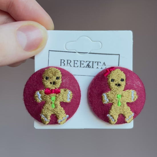 Our Gingerbread Button Earrings bring a playful touch of Christmas charm to any outfit. Each pair is handmade using cotton-covered buttons with detailed machine embroidery, creating a sweet, nostalgic gingerbread boy and girl motif that feels cosy and festive without being over the top.
