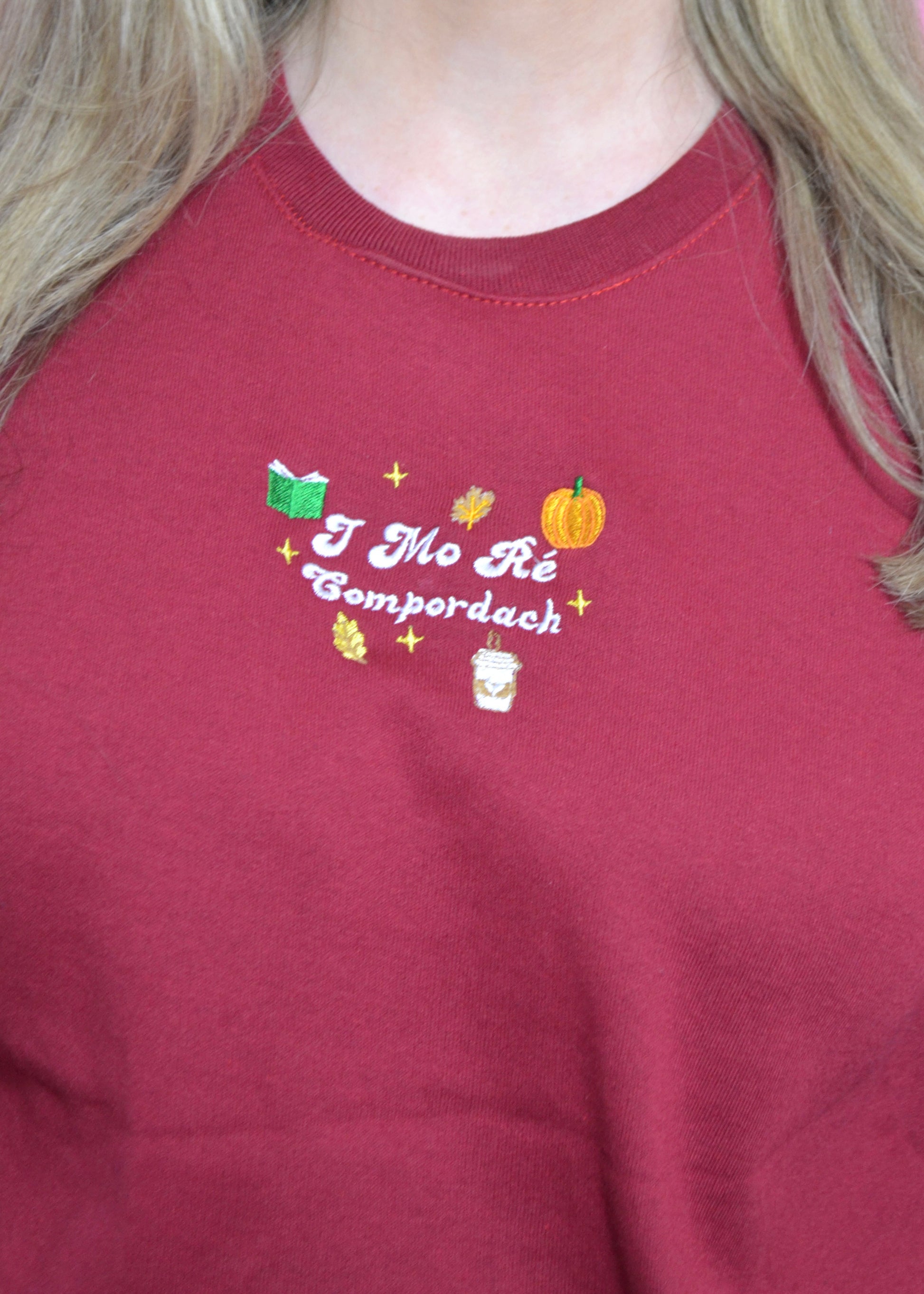 Imagine a crisp autumn morning in Donegal—peat fire burning, a warm coffee at your side, a soft Irish breeze and a book in hand. We’ve stitched that feeling into this sweatshirt. Embroidered across the chest is: