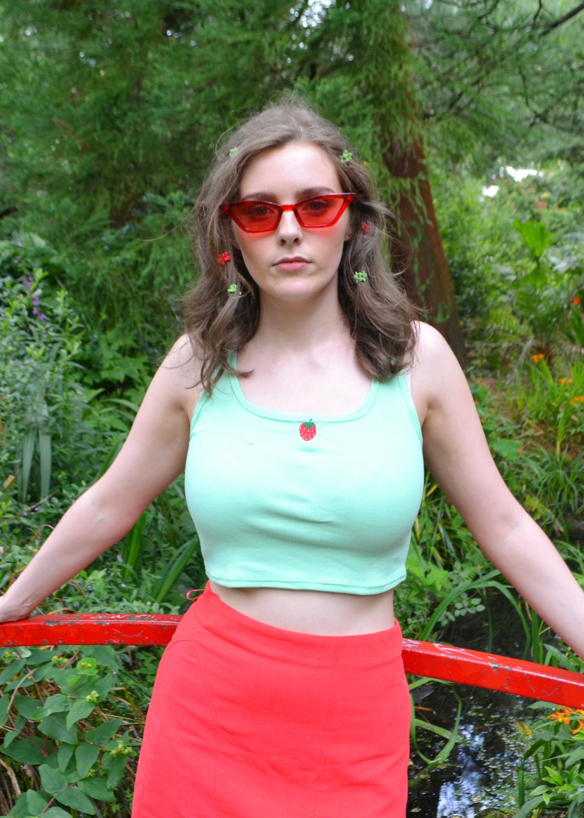 Indulge in the allure of nature with our Embroiderer Green Strawberry Tank Top. This enchanting square-neck top boasts an intricately embroidered strawberry motif that captures the freshness of Summer's bounty. Meticulously crafted, this vibrant tank top is designed to keep you cool and confident as you breeze through sun-soaked days, while also offering a stylish option for the crisper days of Autumn and Winter. The captivating green hue adds a pop of colour while the charming strawberry embroidery adds a playful touch, making it a versatile piece that seamlessly transitions year-round.